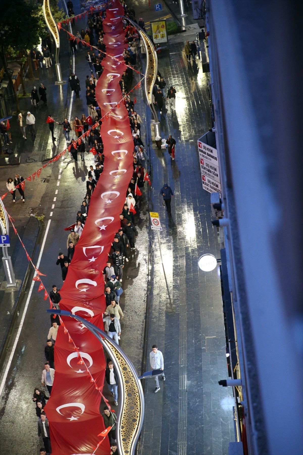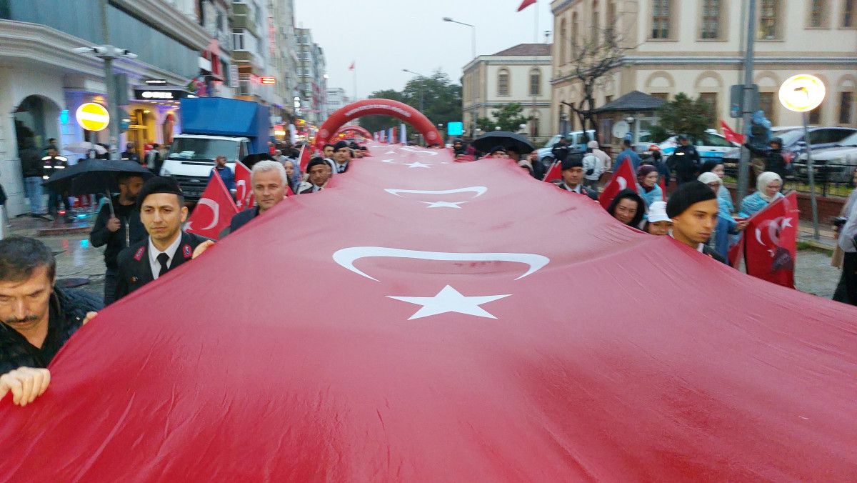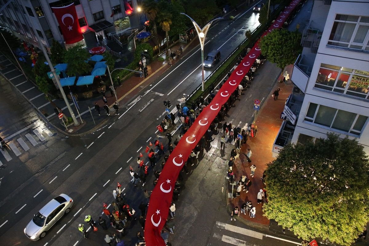 Dev Türk bayrağını taşıyan vatandaşlar, marşlar eşliğinde yürüdü.