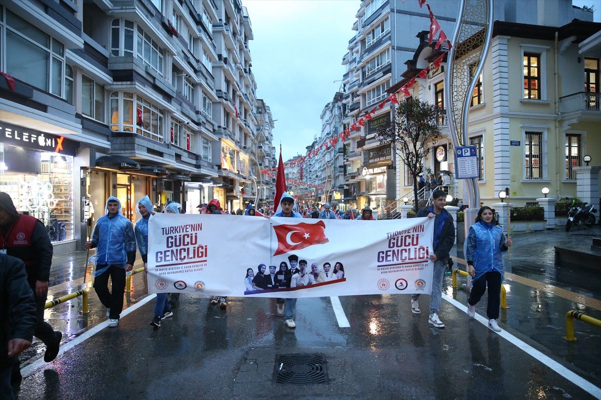 Sağanak yağmura karşın binlerce kişi ellerinde fenerlerle yürüyüşe katıldı.