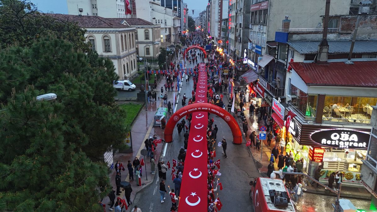 1919 METRELİK BAYRAK MARŞLAR EŞLİĞİNDE TAŞINDI