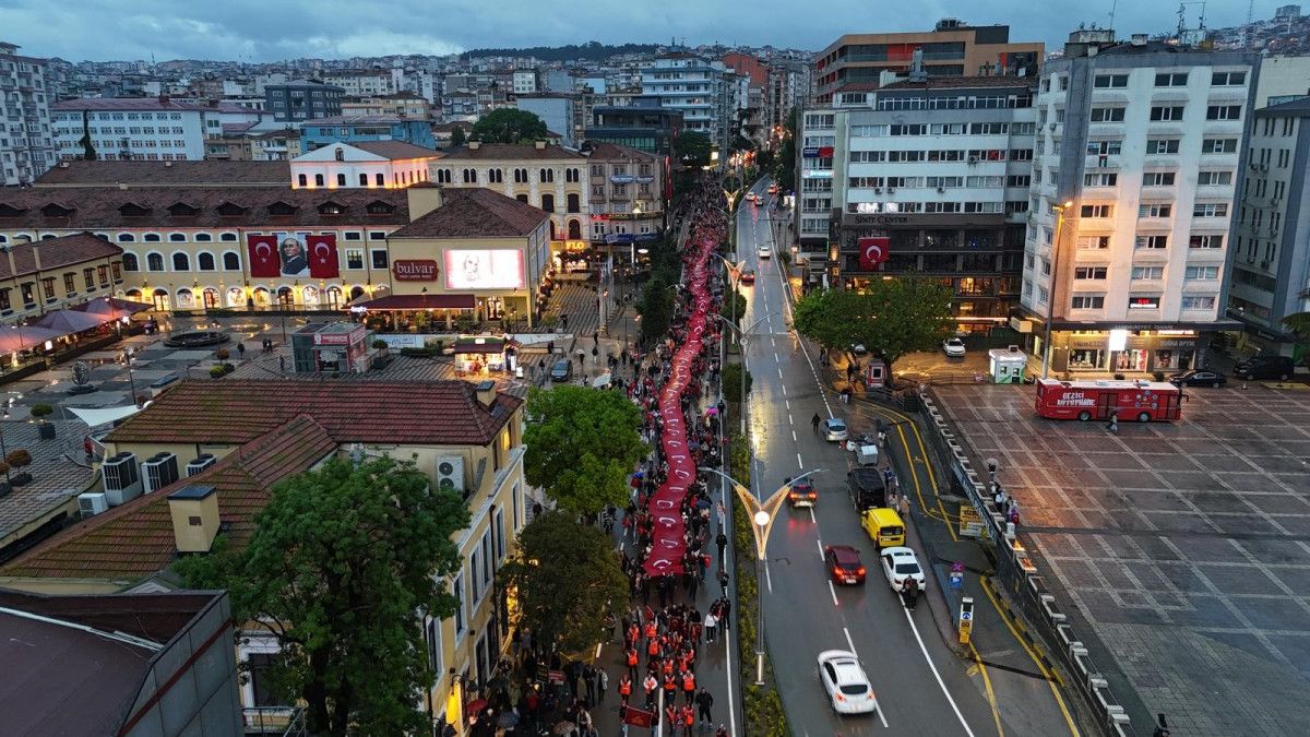 Samsun’un İlkadım ilçesinde 19 Mayıs Atatürk’ü Anma, Gençlik ve Spor Bayramı aktiflikleri çerçevesinde 1919 metrelik dev Türk bayrağıyla “Bayrak ve Fener Alayı” yürüyüşü düzenlendi.
