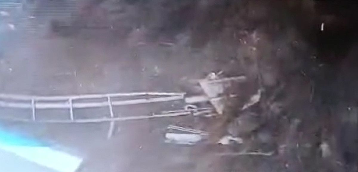 4 kişilik ailenin aracının heyelan altında kaldığı anlar güvenlik kamerasınca saniye saniye kaydedildi.