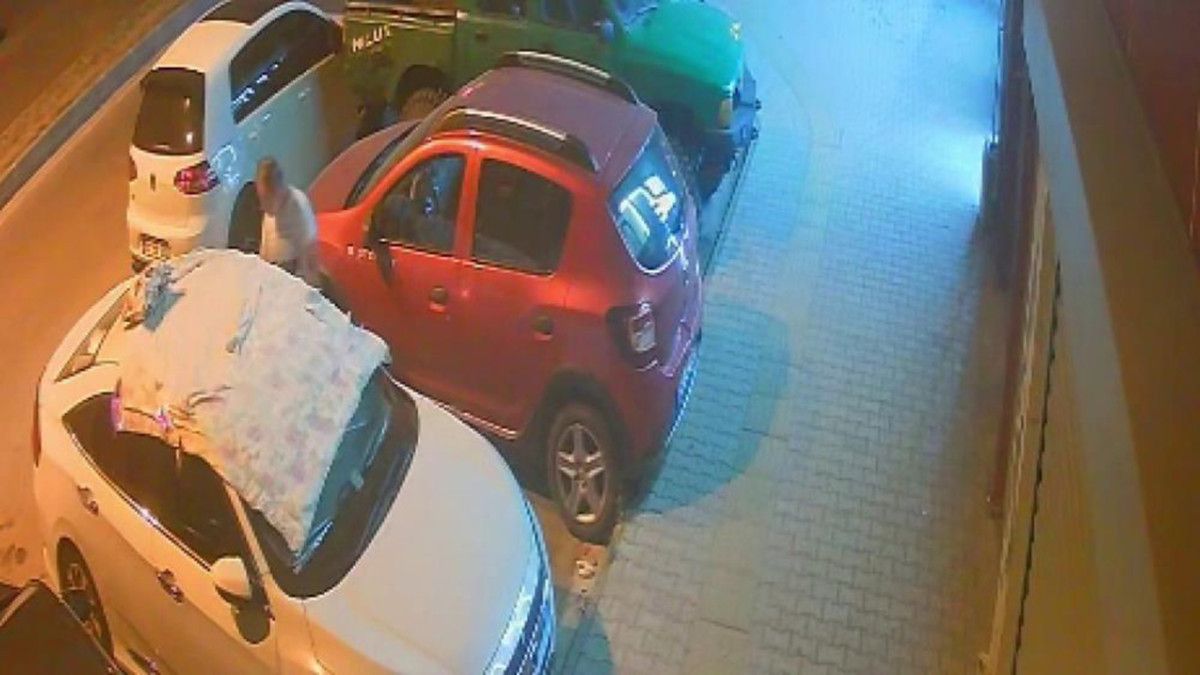 Şahsın battaniyeyi serdikten sonra ateşe verdiği ardından yürüyerek olay yerinde uzaklaştığı anlar güvenlik kamerası tarafından kaydedildi.