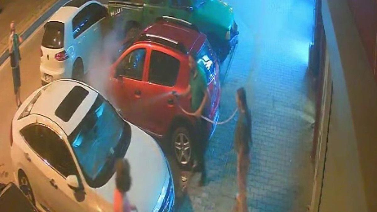 Yanan araba, müdahale ile söndürülürken H.T. ise polis gruplarının takibi sonucu yakalanarak gözaltına alındı.