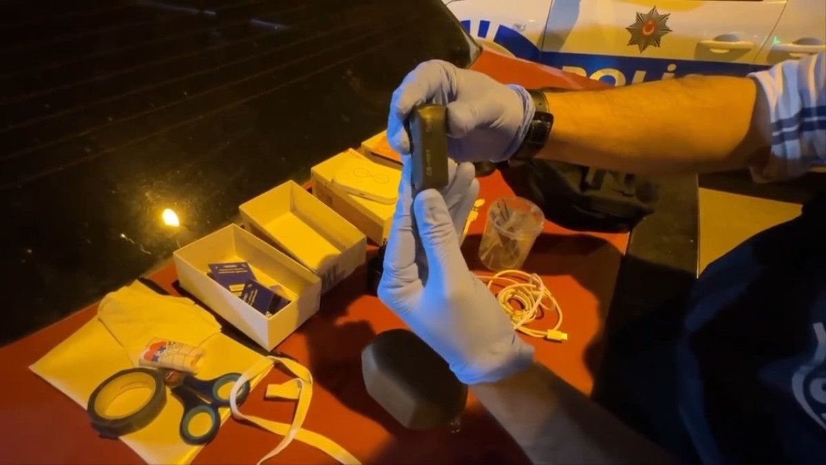 Araçta ve şahısların üzerinde yapılan aramalarda 3 adet casus kulaklık, 2 yaka kamerası, 2 verici aygıt, 6 sim kart ve çok sayıda elektronik ekipman ele geçirildi.