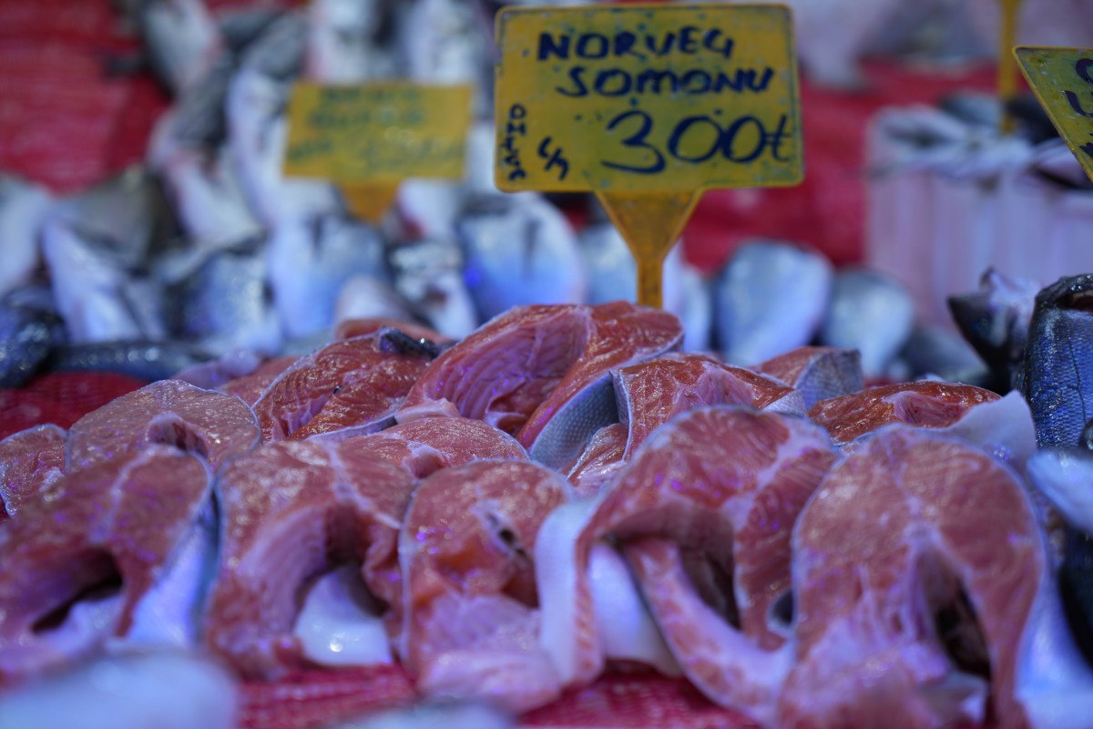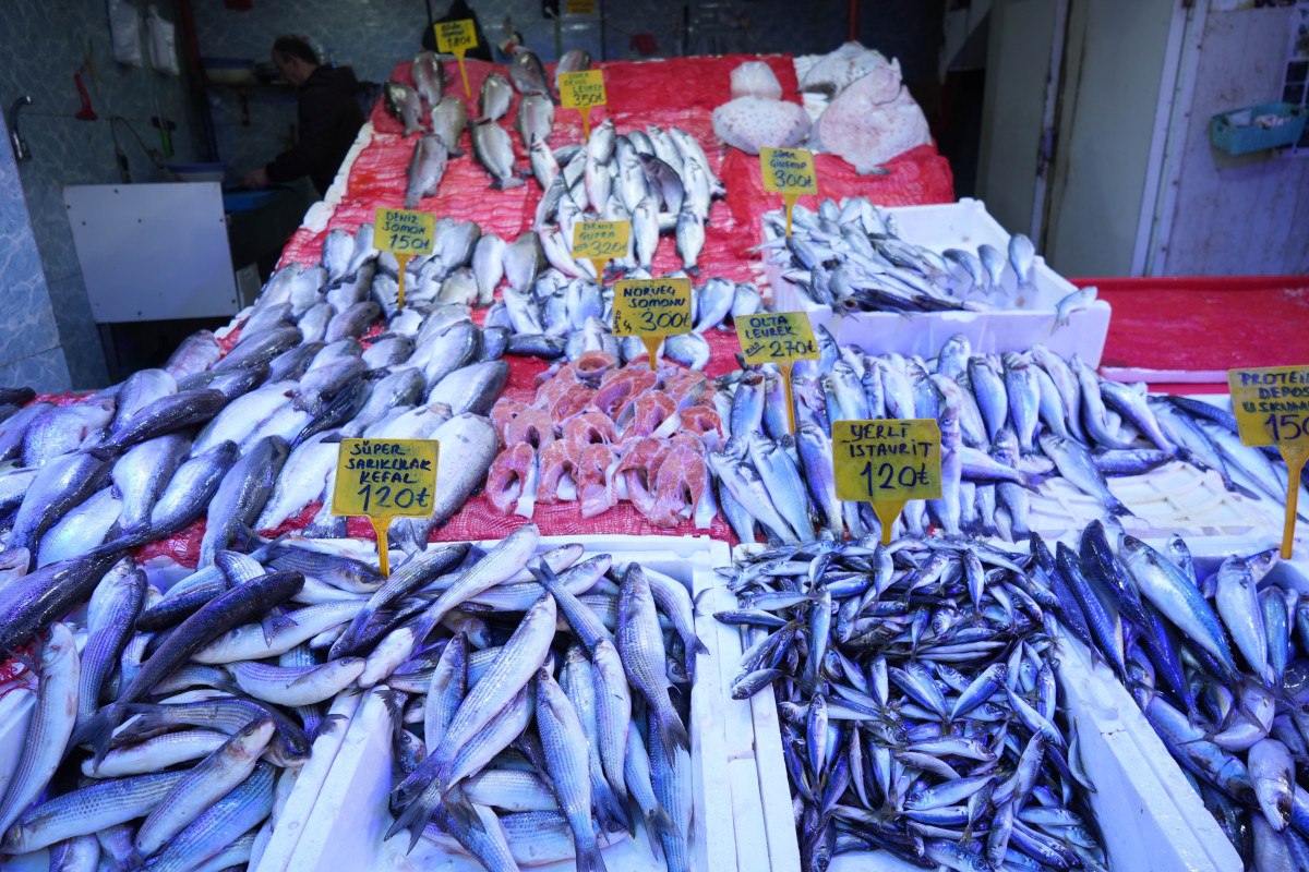 Av sezonu bitti. Tezgahlarda kültür balıkları satılmaya devam ediyor. Alabalık, somon, uskumru, levrek, çipura gibi balıklar satıyoruz. Tek tük ufak kayıkların avladığı hamsi ve istavrit de bulunuyor. Bir süre sonra onlar da görünmez. Alabalık ve somonun kilosu 150 TL’den, çipura kilo 320 TL, levrek kilo 350 TL, Norveç somonu kilo 300 TL’den satışa sunuluyor.