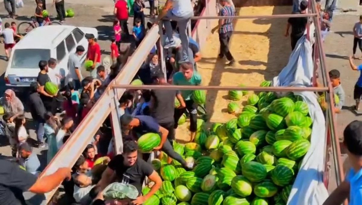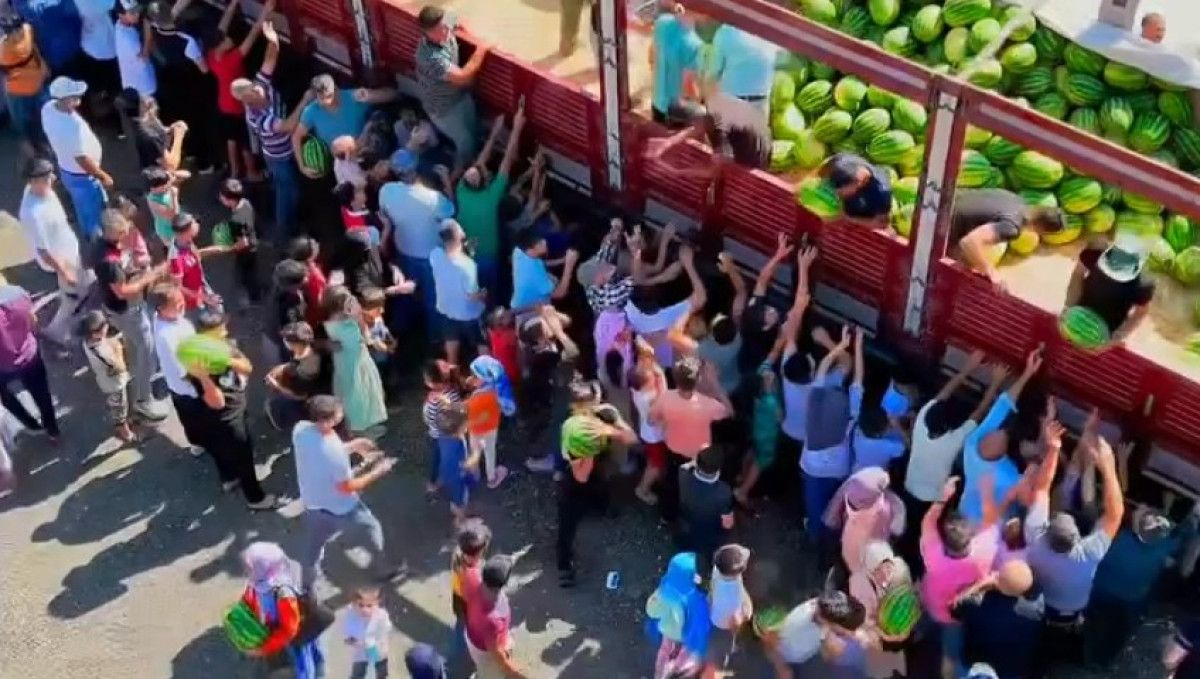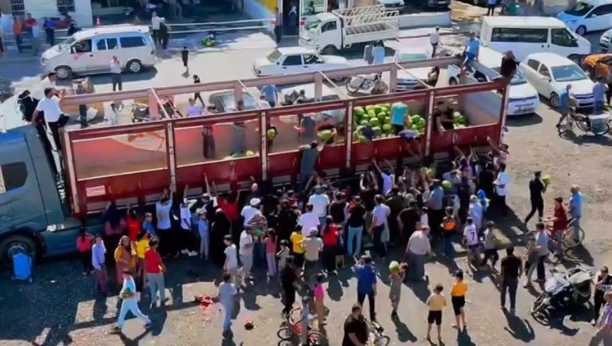 Şanlıurfa’nın Birecik İlçesinde uzun yıllardır karpuz satışı yapan İbrahim Öztürk, karpuzları bu kere satmak yerine ilçe meydanında halka fiyatsız dağıttı.