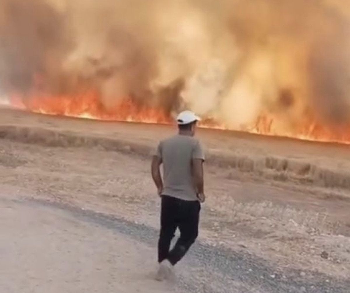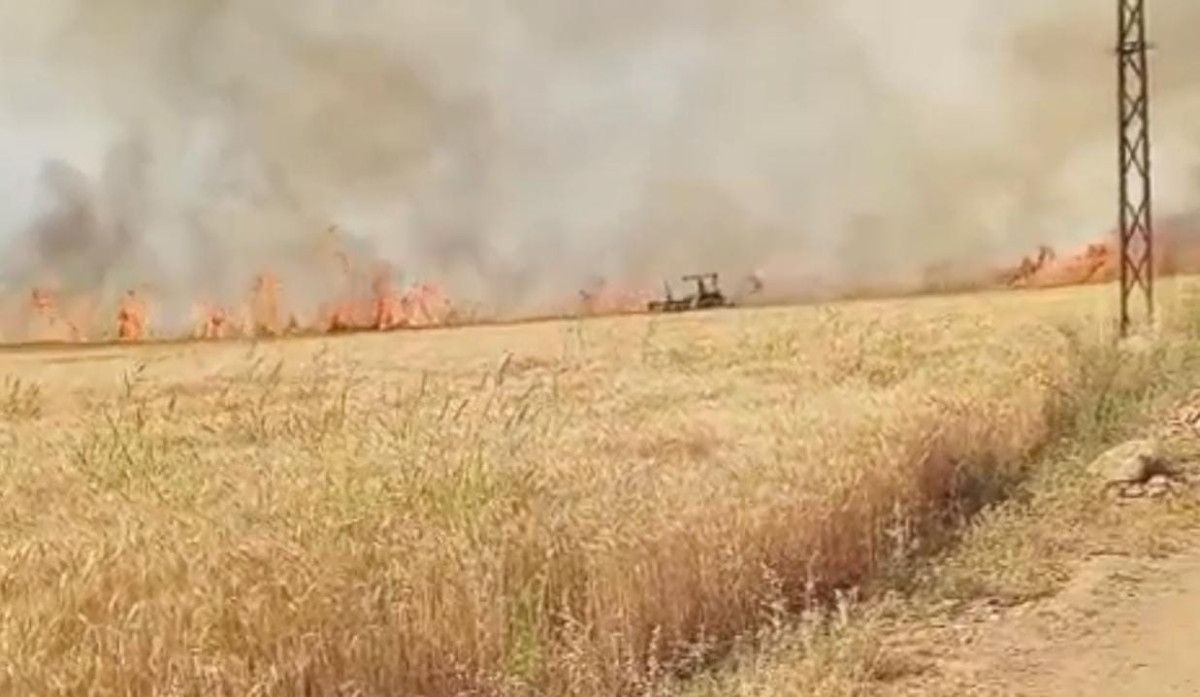 Şanlıurfa’nın Harran ilçesine bağlı kırsal Gögeç Mahallesi’nde teze nazaran elektrik tellerinden düşen kıvılcımlar nedeniyle yangın çıktı.