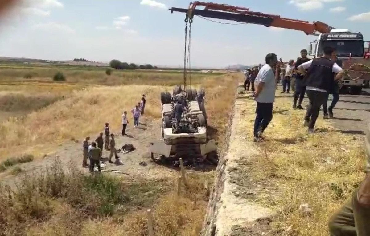 Şanlıurfa’da kum kamyonu şarampole devrildi: 2 yaralı