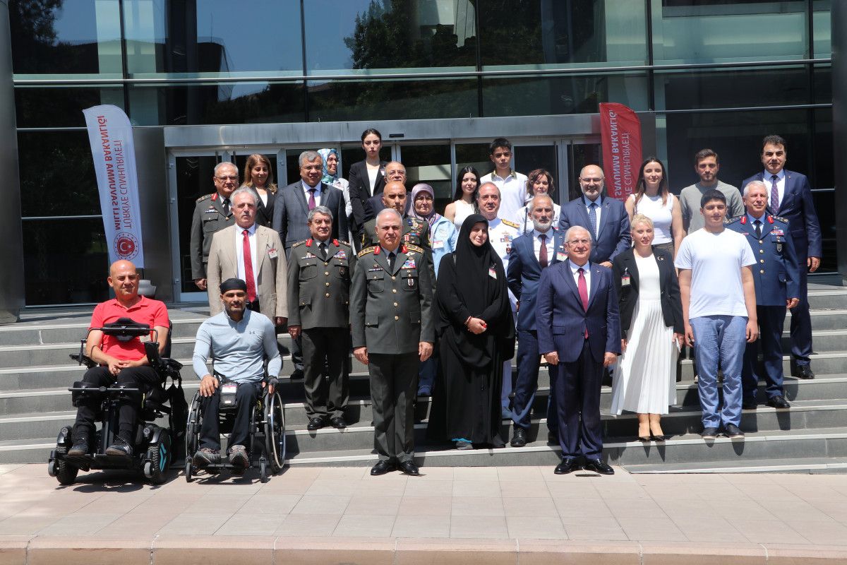 Bakan Güler, merasim sonunda şehit ve gazi yakınlarıyla hatıra fotoğrafı çektirdi.