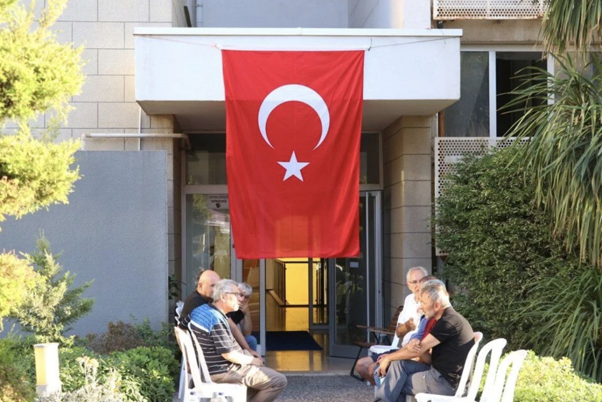 Ailenin yaşadığı daireye ve siteye Türk bayrakları asıldı.