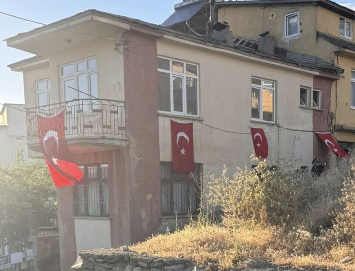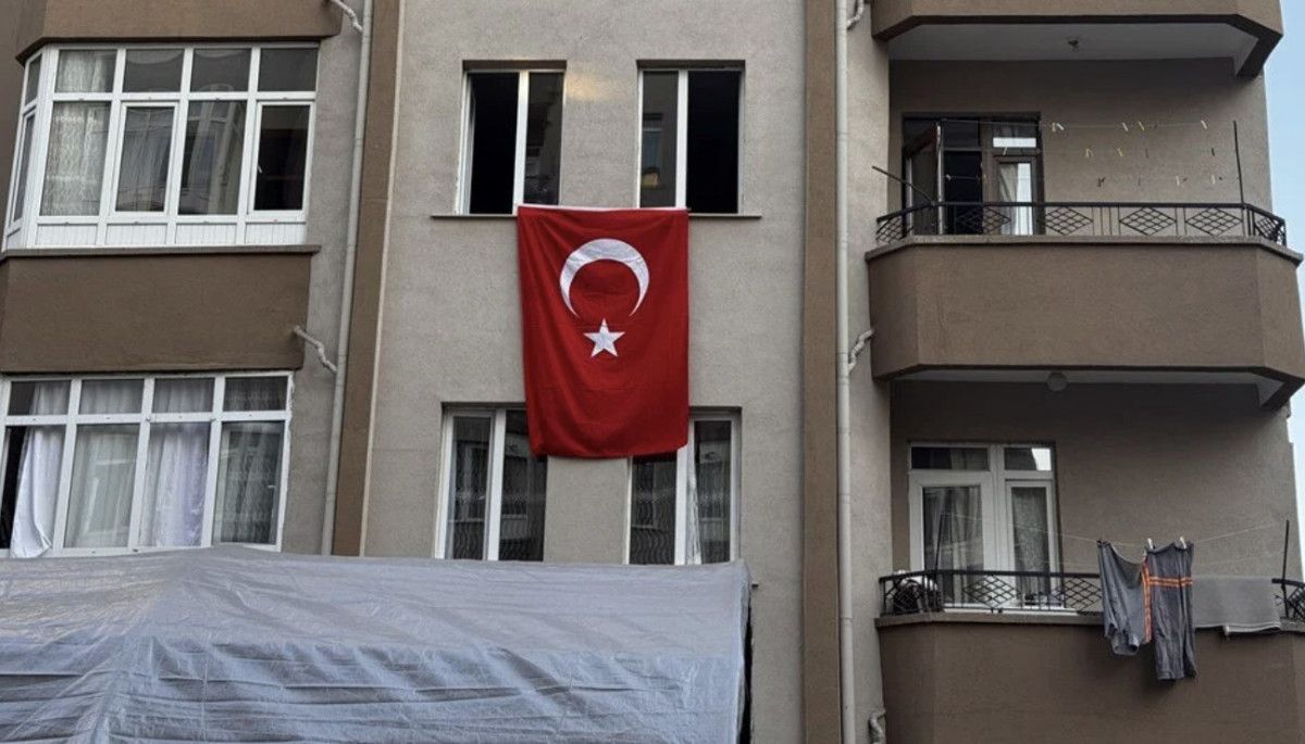 Ailenin yaşadığı binaya Türk bayrağı asıldı.
