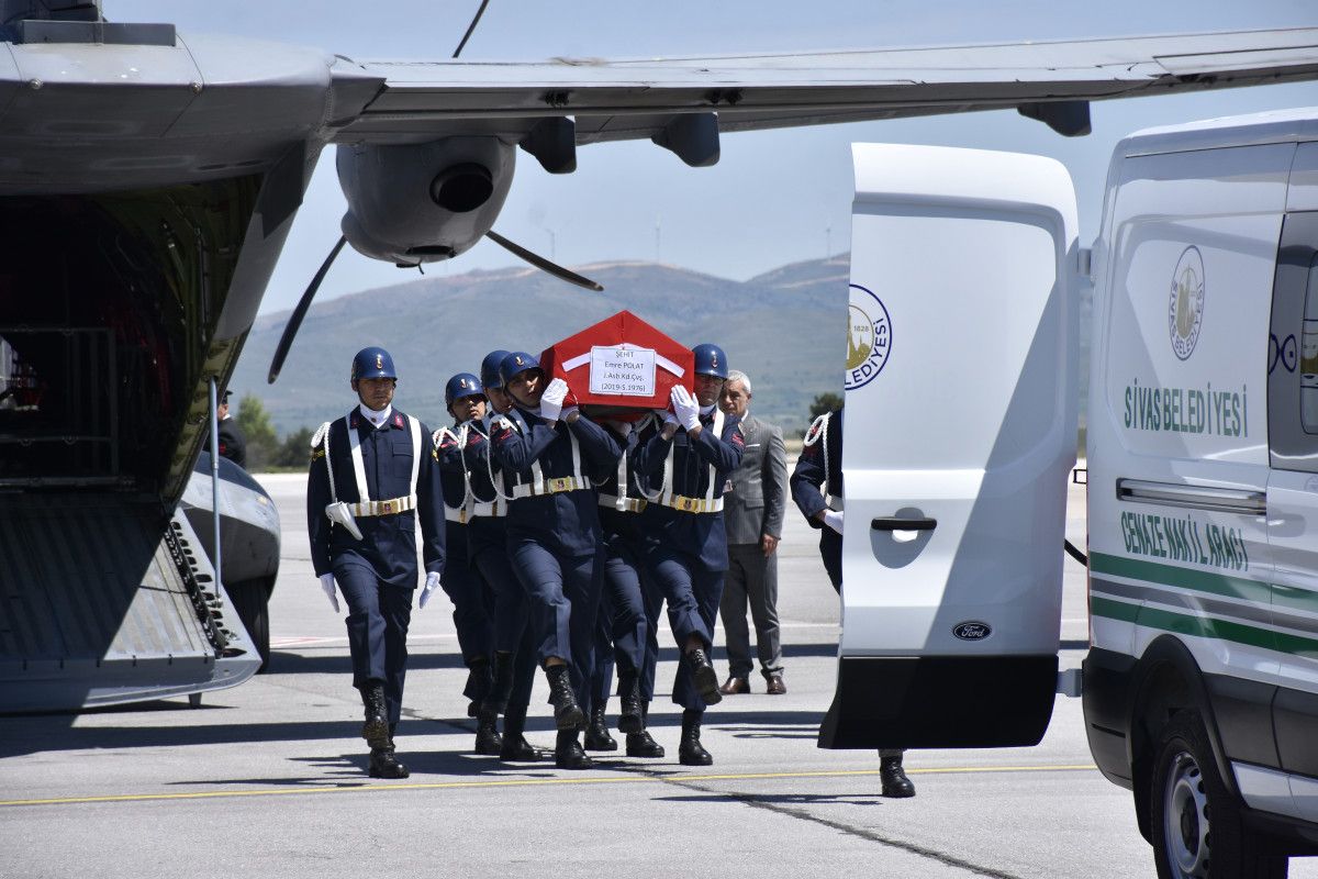 Ankara’daki merasimin akabinde Şehit Jandarma Astsubay Emre Polat’ın cenazesi, askeri uçakla Sivas Nuri Demirağ Havalimanı’na getirildi.