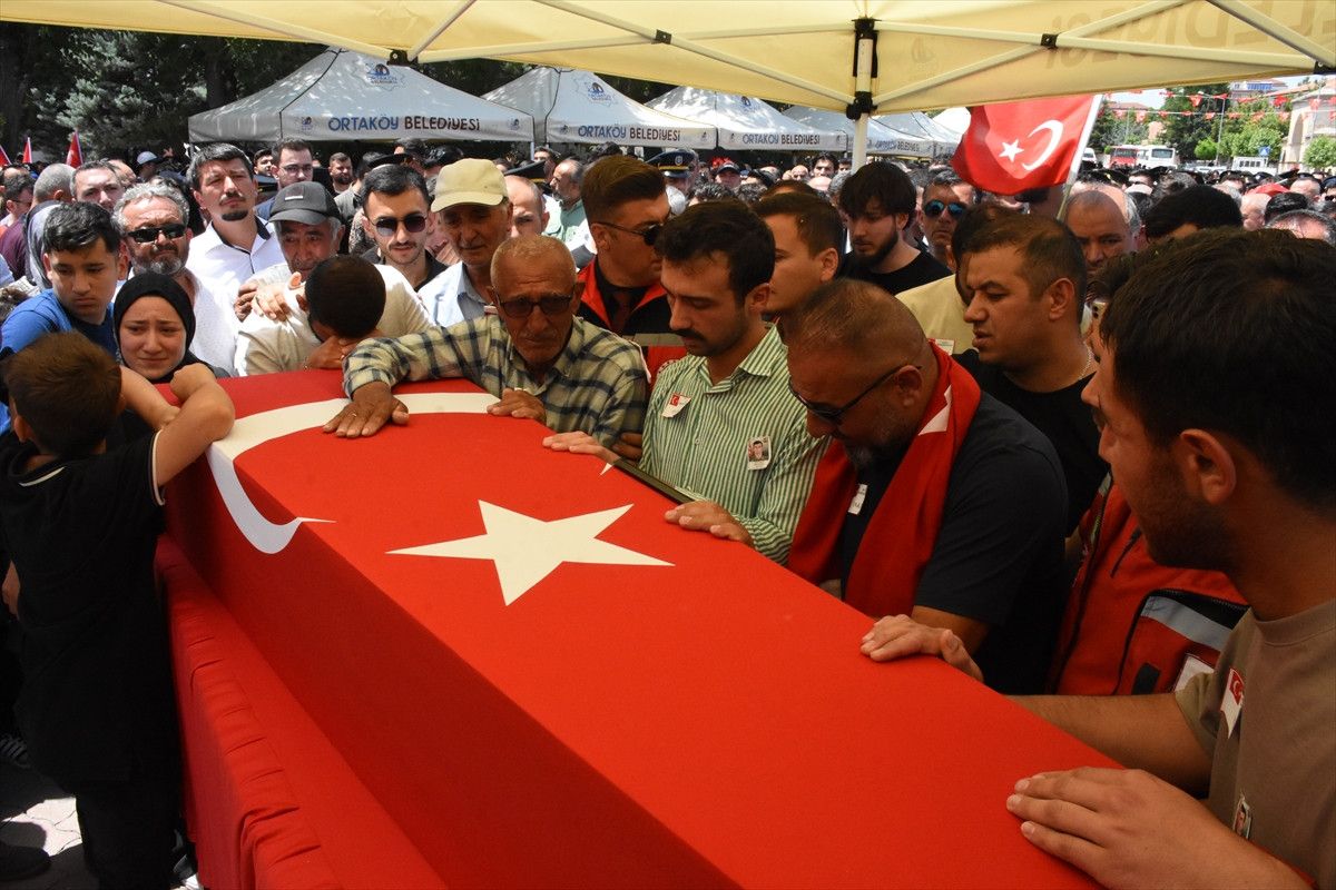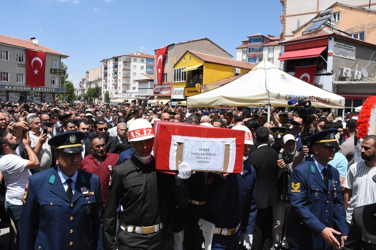 Pençe-Kilit Harekatı bölgesindeki mağarada arama tarama faaliyetinde metan gazından etkilenerek şehit olan askerlerden biri olan Piyade Kontratlı Er Özkan Özkanlı’nın Türk bayrağına sarılı naaşı, Ortaköy Devlet Hastanesi morgundan cenaze merasiminin yapılacağı Ortaköy İlçe Meydanı’na getirildi.