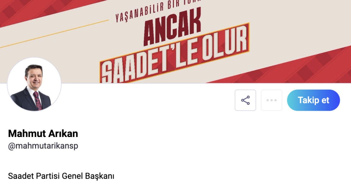 Saadet Partisi’nden yapılan yazılı açıklamada, T3 Vakfı Mütevelli Heyeti Lideri Selçuk Bayraktar’ın, siyasi parti genel liderlerini NeXT Sosyal’e katılmaya davet ettiği anımsatılarak, Arıkan’ın “mahmutarikansp” şeklinde toplumsal medya hesabı açtığı belirtildi.