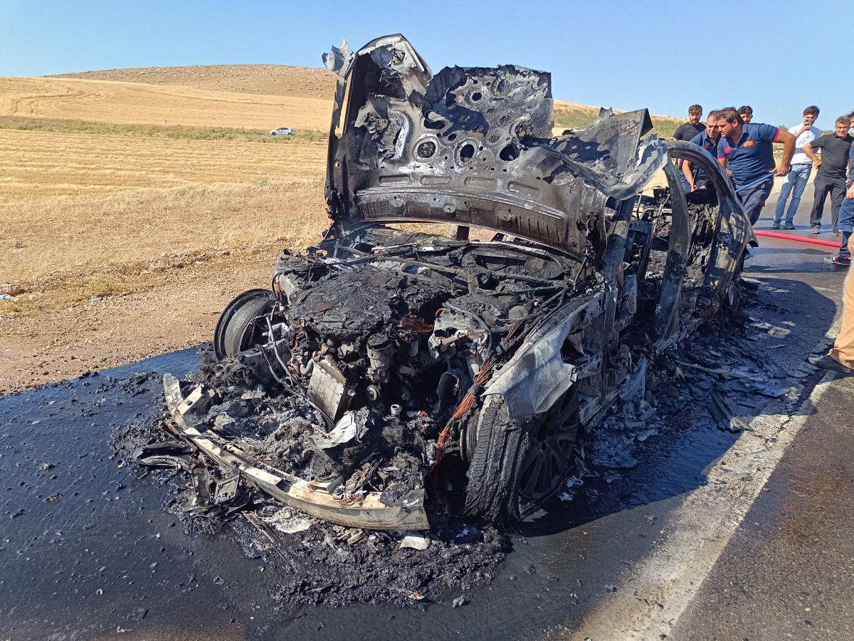 Ekiplerin müdahalesiyle söndürülen yangında araç kullanılamaz hale geldi.
