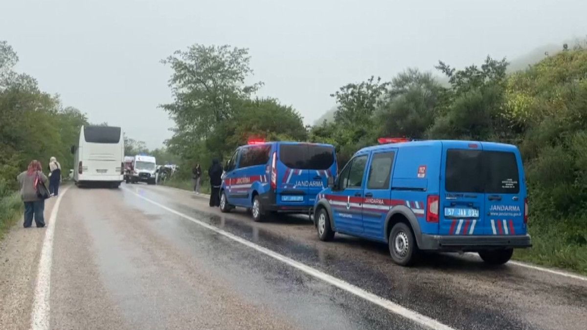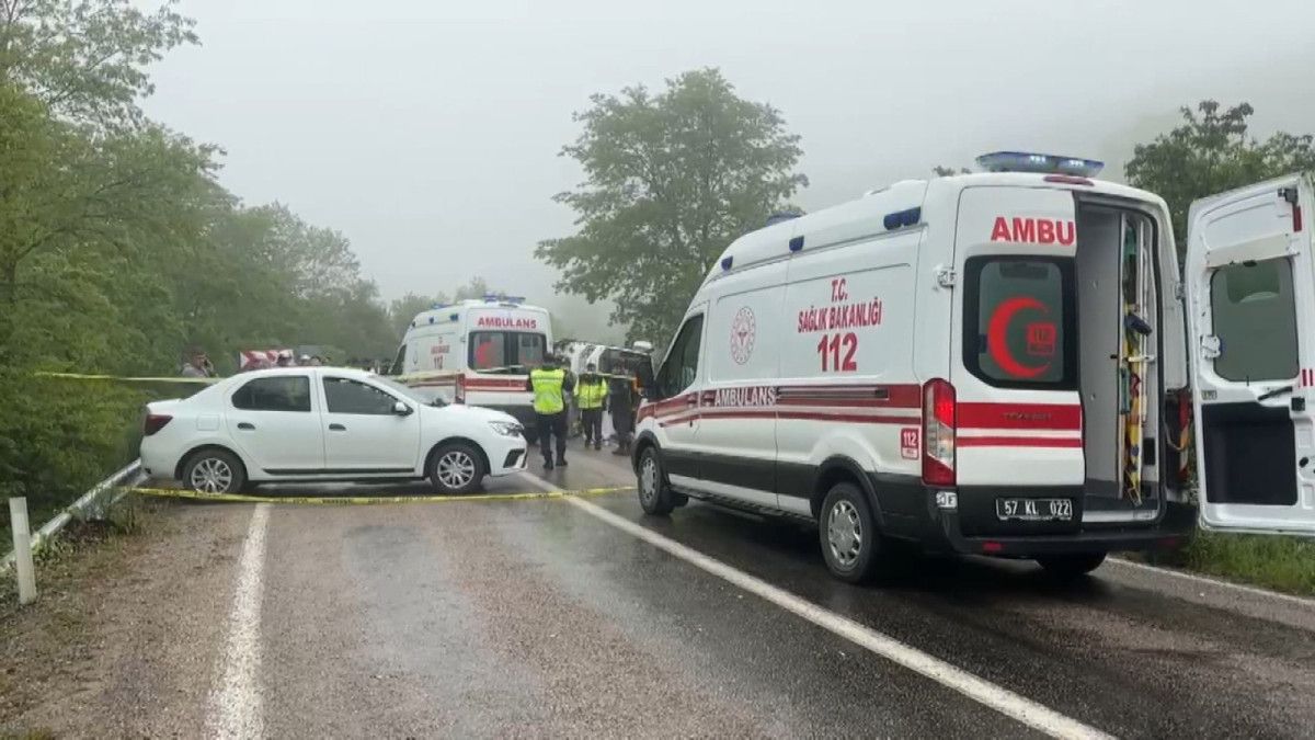 Sinop’un Erfelek-Gerze kara yolunda sabah saatlerinde meydana gelen kazada, üniversite öğrencilerini taşıyan bir cins otobüsüyle bir araba çarpıştı. Aloğlu köyü yakınlarında, yağmurun kayganlaştırdığı yolda denetimden çıkan 37 ANN 950 plakalı otobüs, karşı taraftan gelen Muzaffer T. idaresindeki 34 SA 5668 plakalı arabayla çarpıştıktan sonra devrildi.