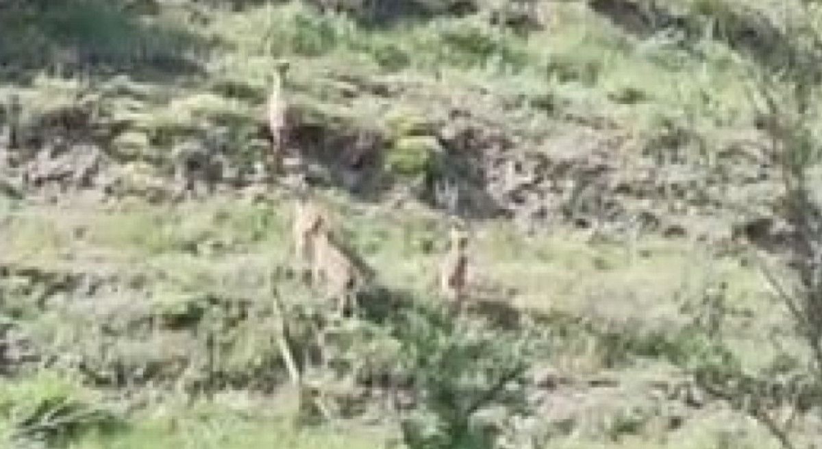 Cep telefonu ile 4 yaban keçisini kaydeden çiftçi, “Kızlar sizi burada vururlar, taşın üstüne çıkın” diye seslendi.