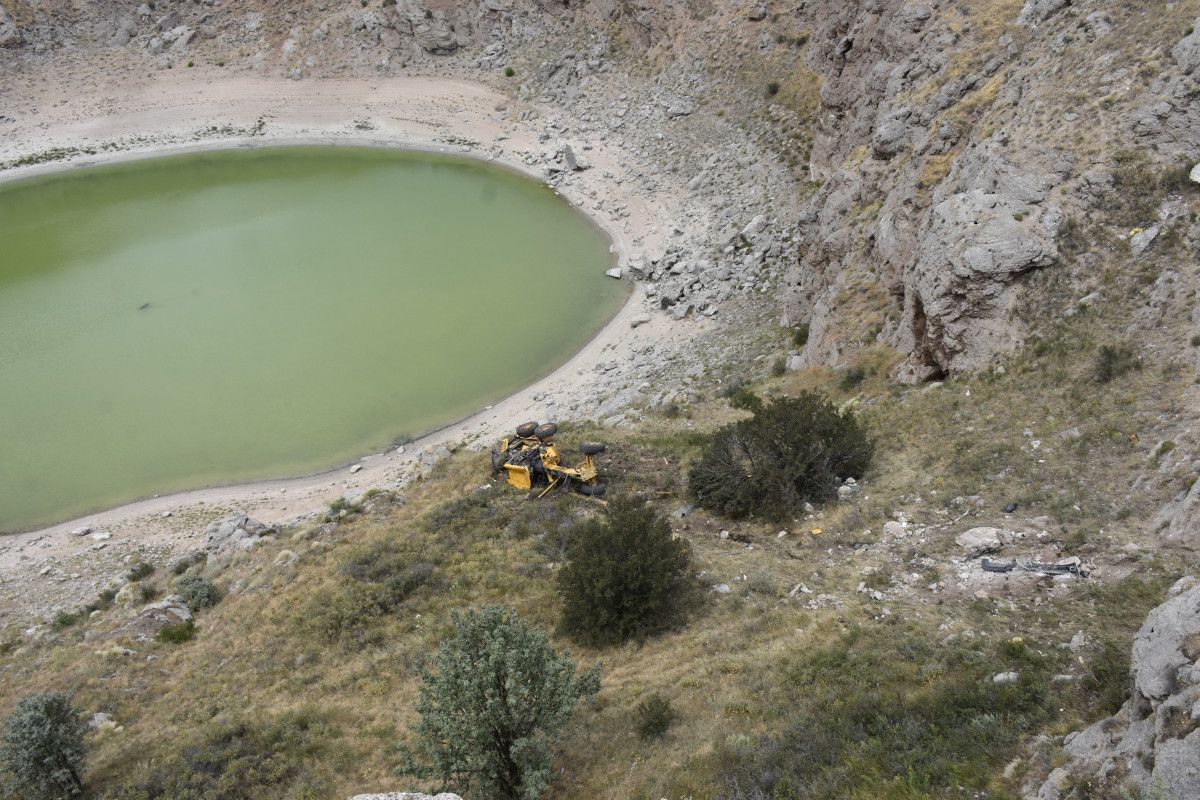 Olay, dün saat 12.00 sıralarında arazi toplulaştırma çalışmaları sırasında yaşandı. Operatör V.D. (54), kullandığı greyderi öğlen yemeği molasında park etti, lakin el frenini çekmeyi unuttu. Denetimden çıkan iş makinesi, göl görünümünü izlemek için arabalarıyla bölgeye gelen iki arkadaşın bulunduğu araca çarparak, yaklaşık 50 metre yükseklikten uçuruma yuvarlandı.