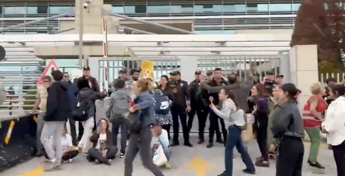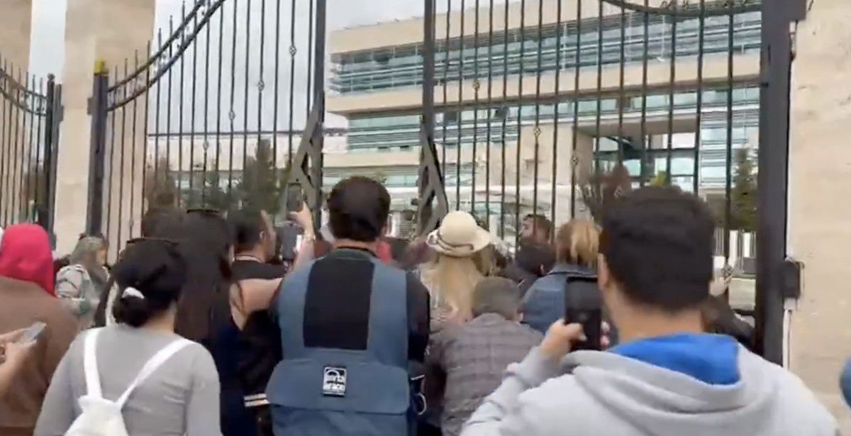 Onlarca kişi, AYM’nin demir kapılarına dayanarak zorla içeri girmeye çalıştı.