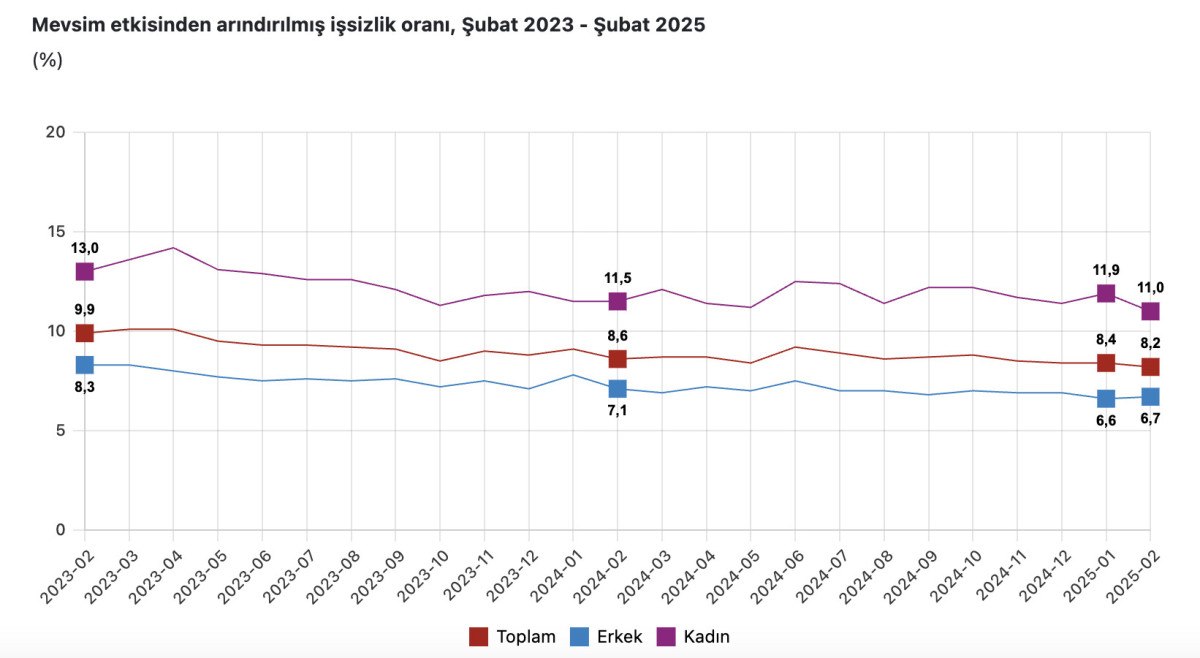 Son dakika haberine göre, mevsim etkisinden arındırılmış işsizlik oranı yüzde 8,2 seviyesinde gerçekleşti.