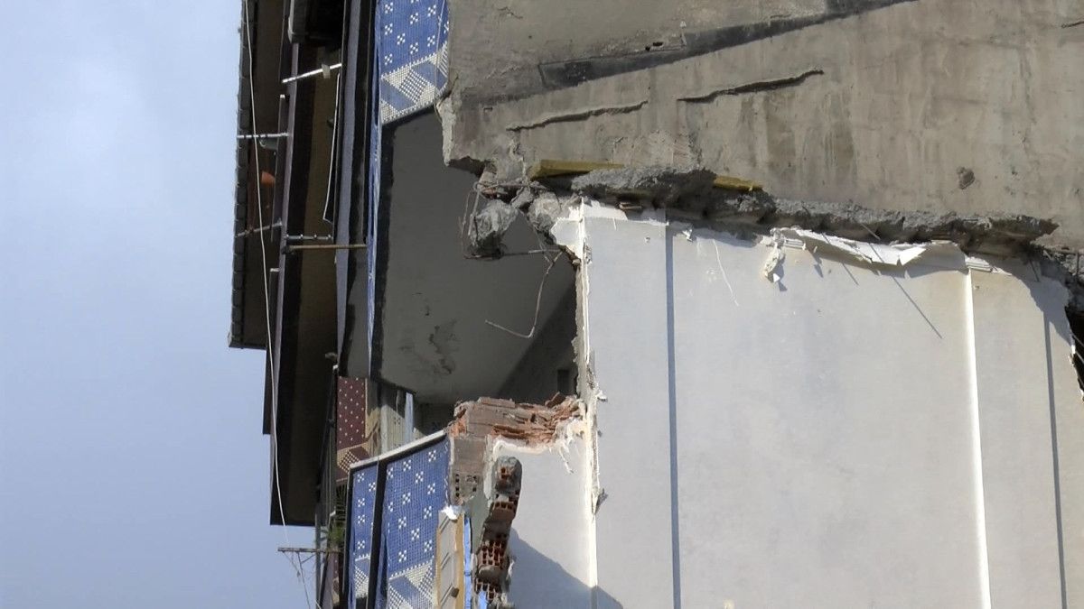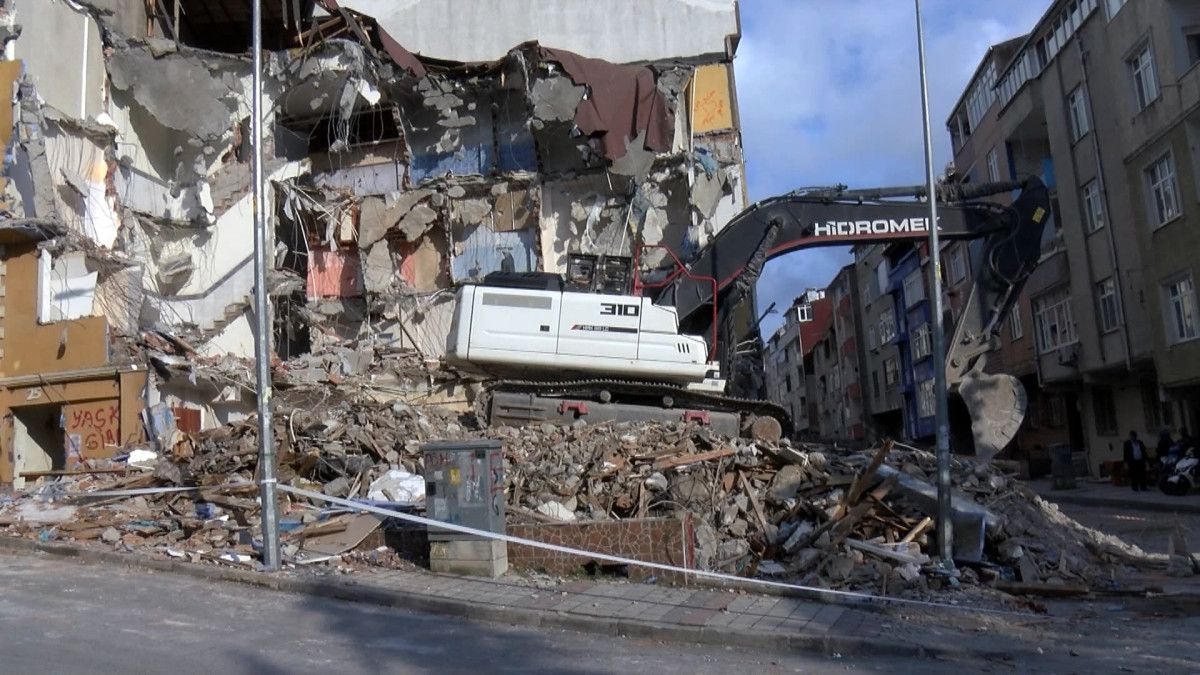 Ancak yıkım esnasında kullanılan kepçenin hareketi sırasında bitişikteki 5 katlı binanın üst katına ziyan verildi.