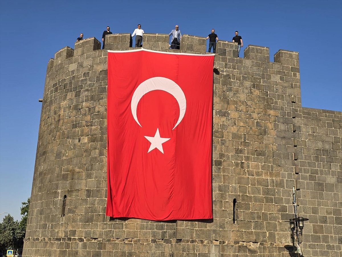 AK Parti Vilayet Başkanlığı’ndan yapılan açıklamada, Cumhurbaşkanı Recep Tayyip Erdoğan’ın ‘Türkiye’nin her hanesi ay yıldızlı bayrağımızla donatılmalı’ daveti kapsamında Diyarbakır Surları’na ulu al bayrağın gururla asıldığı belirtildi.