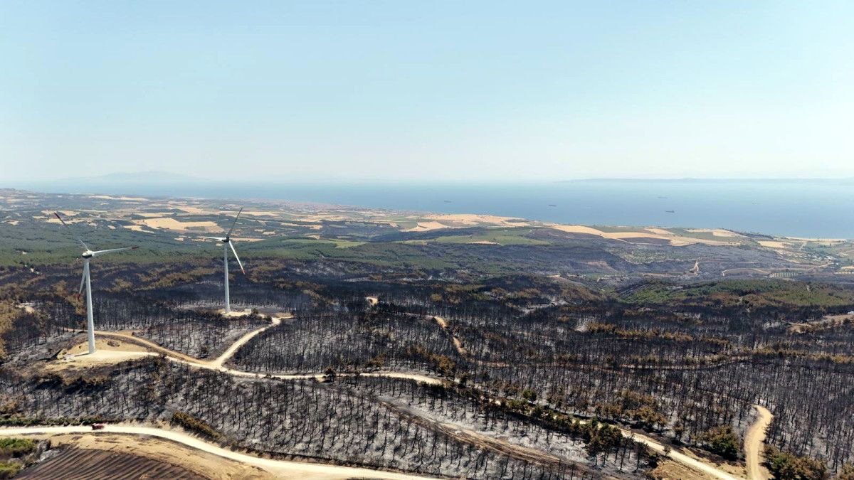 Görüntülerde, ormanın büsbütün yanarak siyaha büründüğü görüldü.