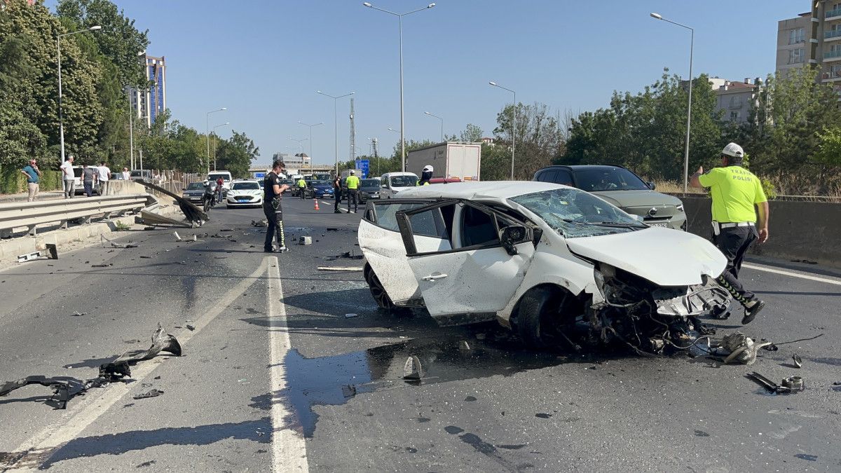 Öte yandan, kaza nedeniyle hurda yığınına arabanın motor ve kaporta kesimleri yola saçıldı.