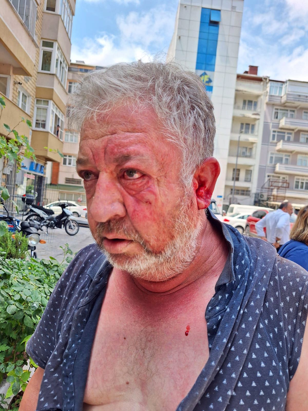 Esnaf Ü.A., park halindeki aracı almaya gelen sürücüyü uyarınca tartışma çıktı.