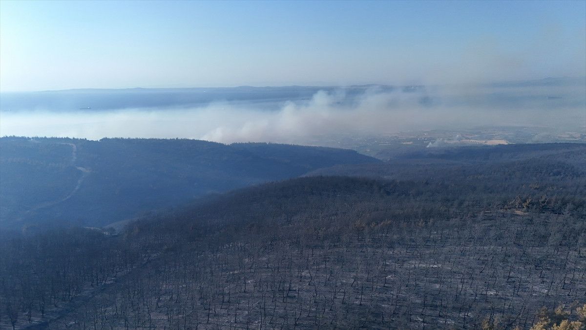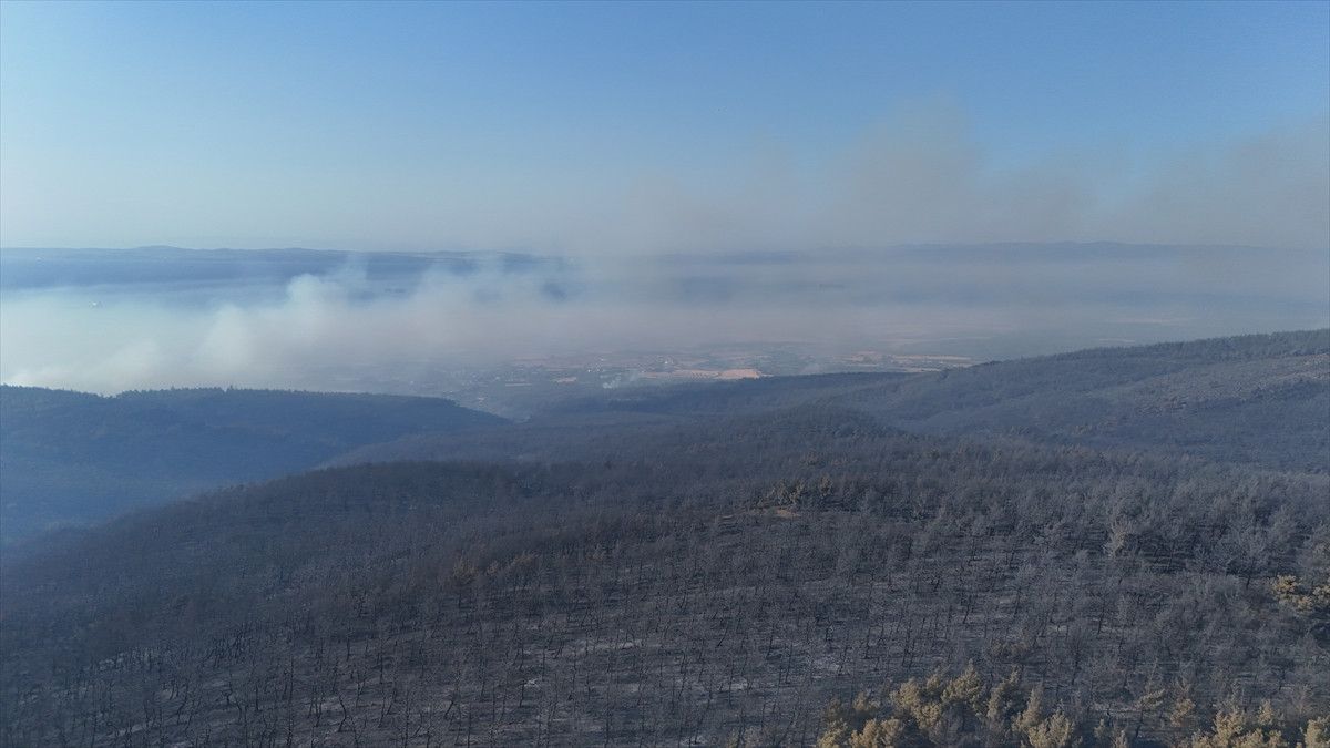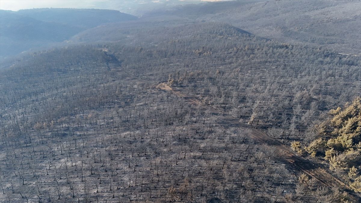 Büyük kısmı çam ormanı olan bölgede yanan alanla dronla görüntülendi.