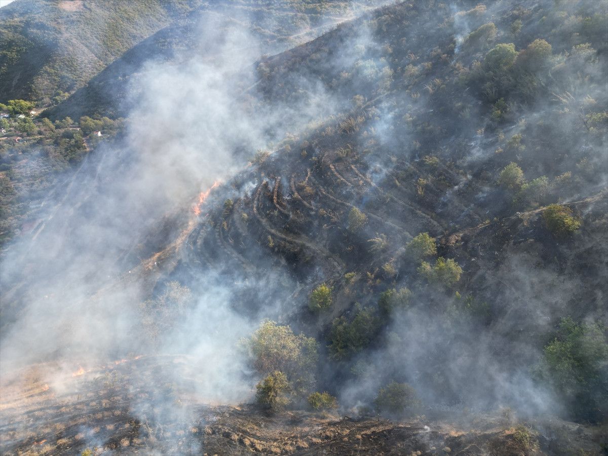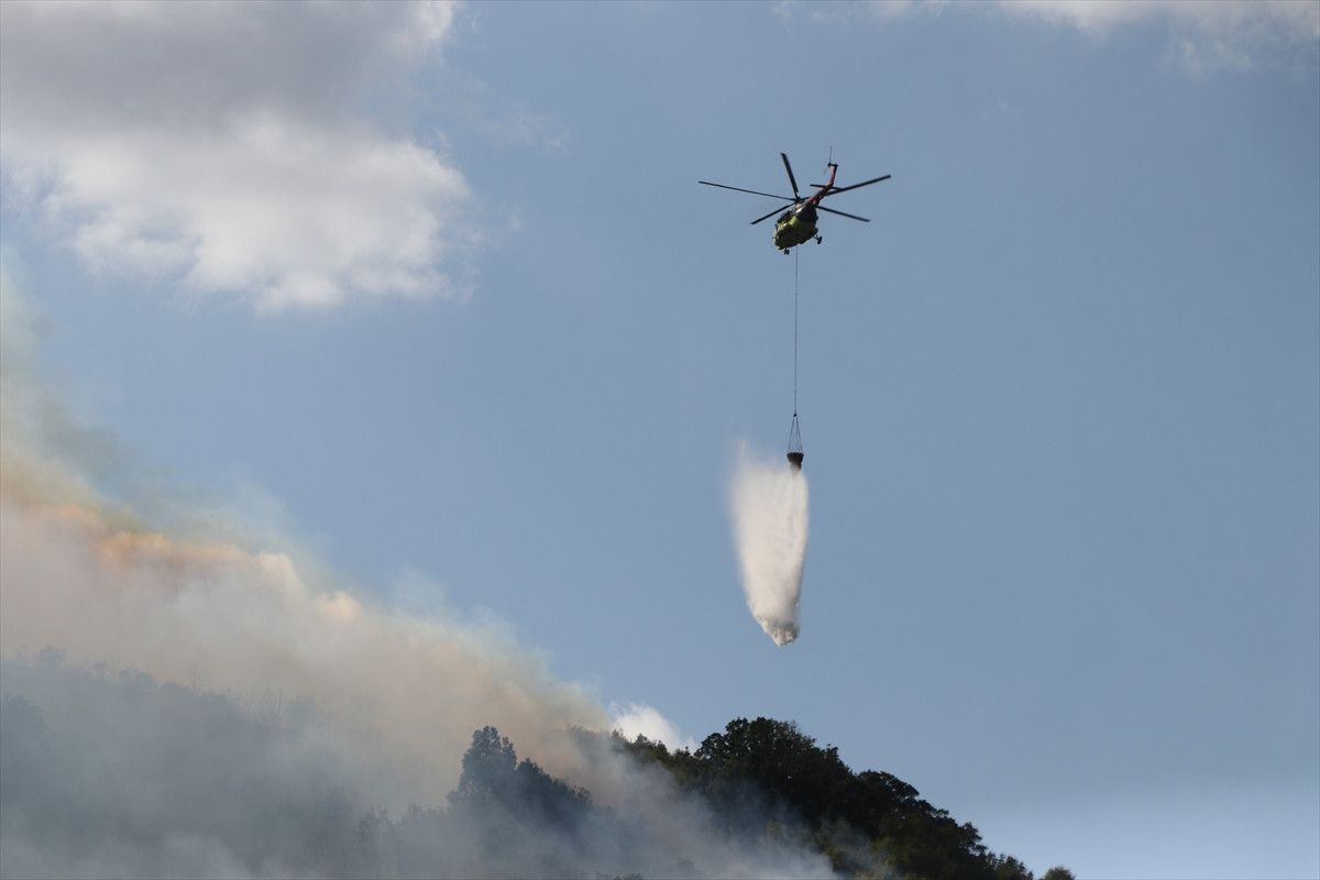 Söndürme çalışmalarına 2 helikopter ve 2 söndürme uçağı da havadan takviye veriyor.