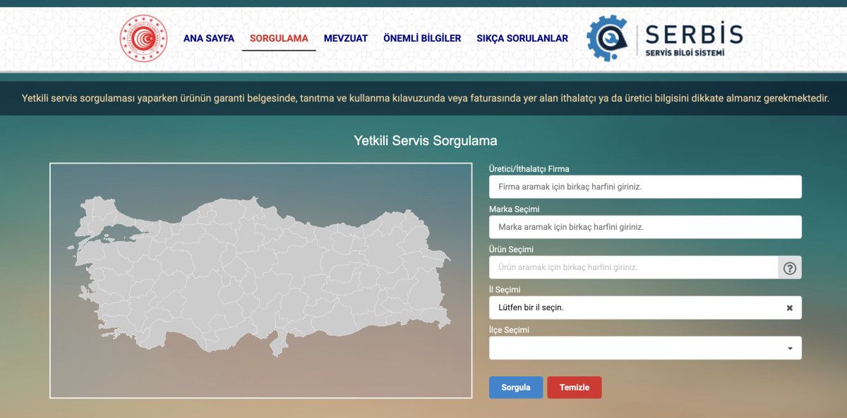 İnternet aramalarında ulaşılan servis bilgilerinin doğruluğu firma resmi internet sitesi yahut SERBIS üzerinden doğrulanmalı.