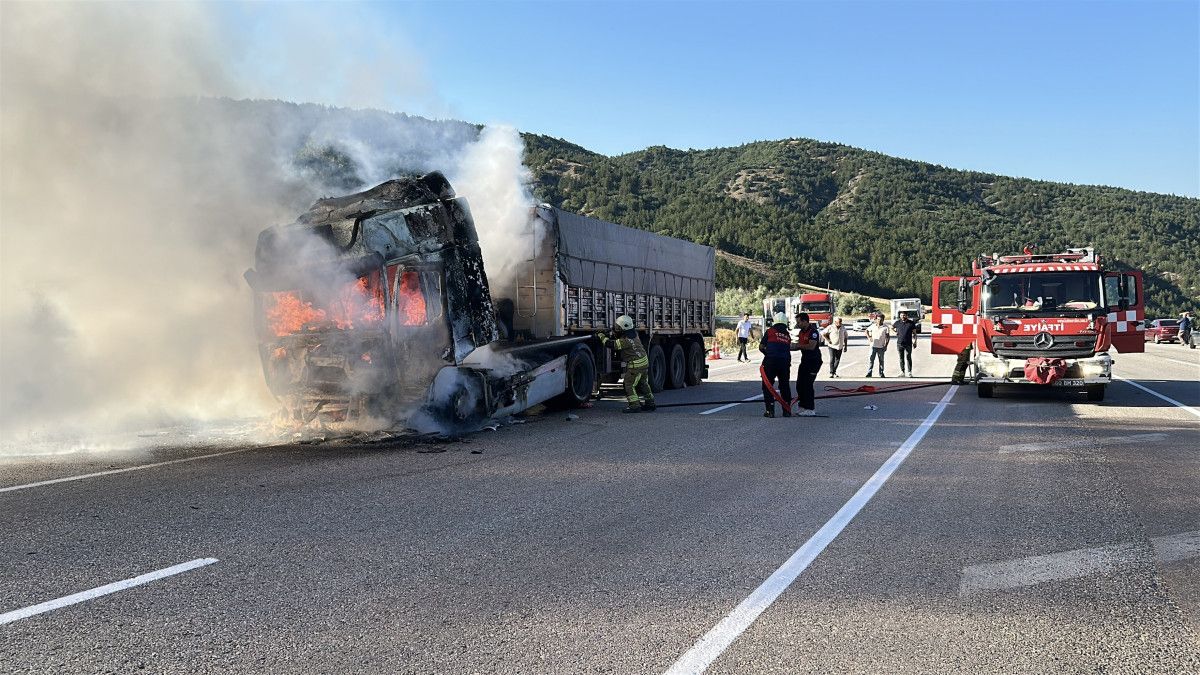 Tokat’da Tokat-Sivas karayolunun 17’nci kilometresinde saat 17.30 sıralarında meydana gelen olayda, argümana nazaran, B.A. yönetimindeki 02 AFJ 090 plakalı tırda bilinmeyen bir sebeple yangın başladı.