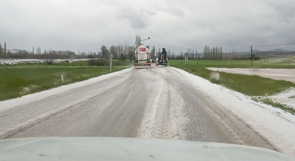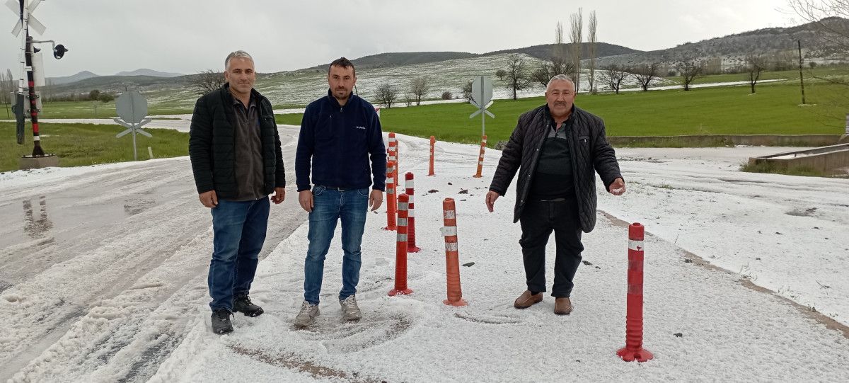 Dolu yağışının akabinde ekili tarım yerleri beyaz örtü ile kaplandı.