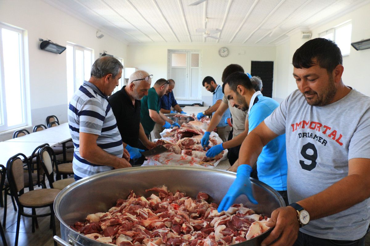 Bu halde organizeyi gerçekleştiriyoruz. Tıpkı vakitte daima bir arada etlerin hazırlanmasında, bölümünde, pişirilmesinde hepsinde köylülerimiz takviye oluyor. Gece geç saatlere kadar kazanlarımız kaynıyor.