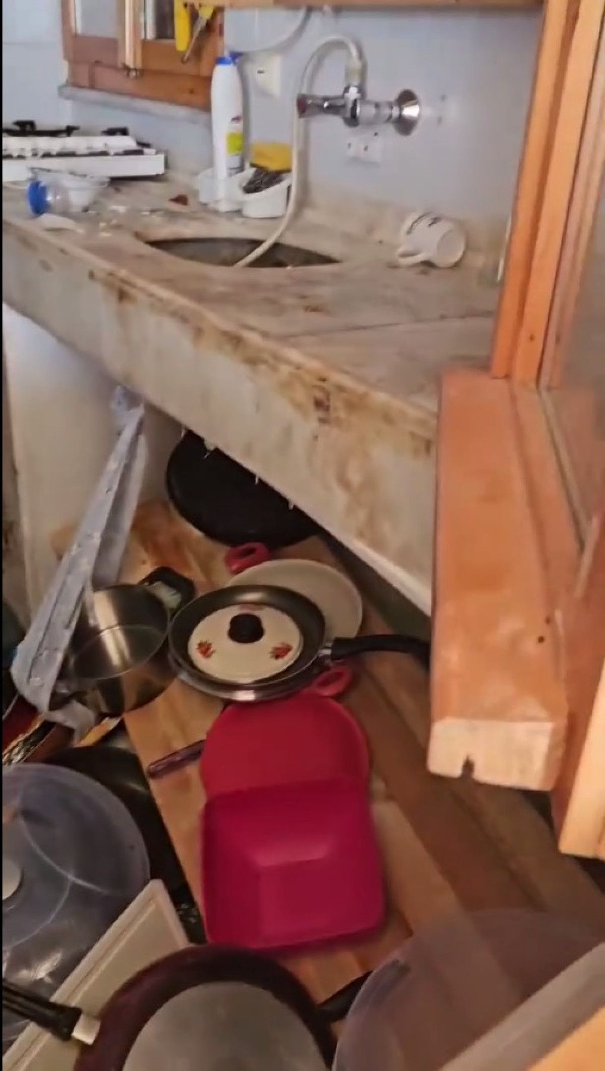 Çebi’nin konutuna pencereden giren ayılar, mutfaktaki gereçlere ziyan verdi.