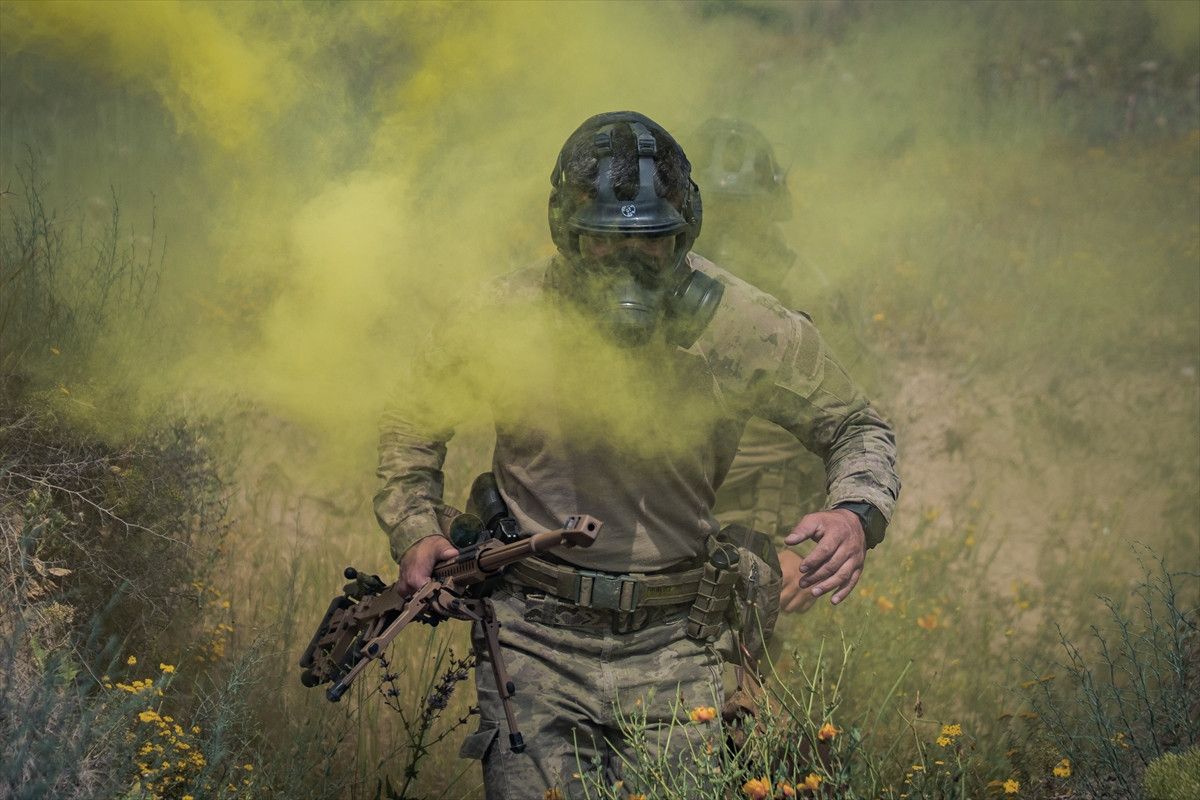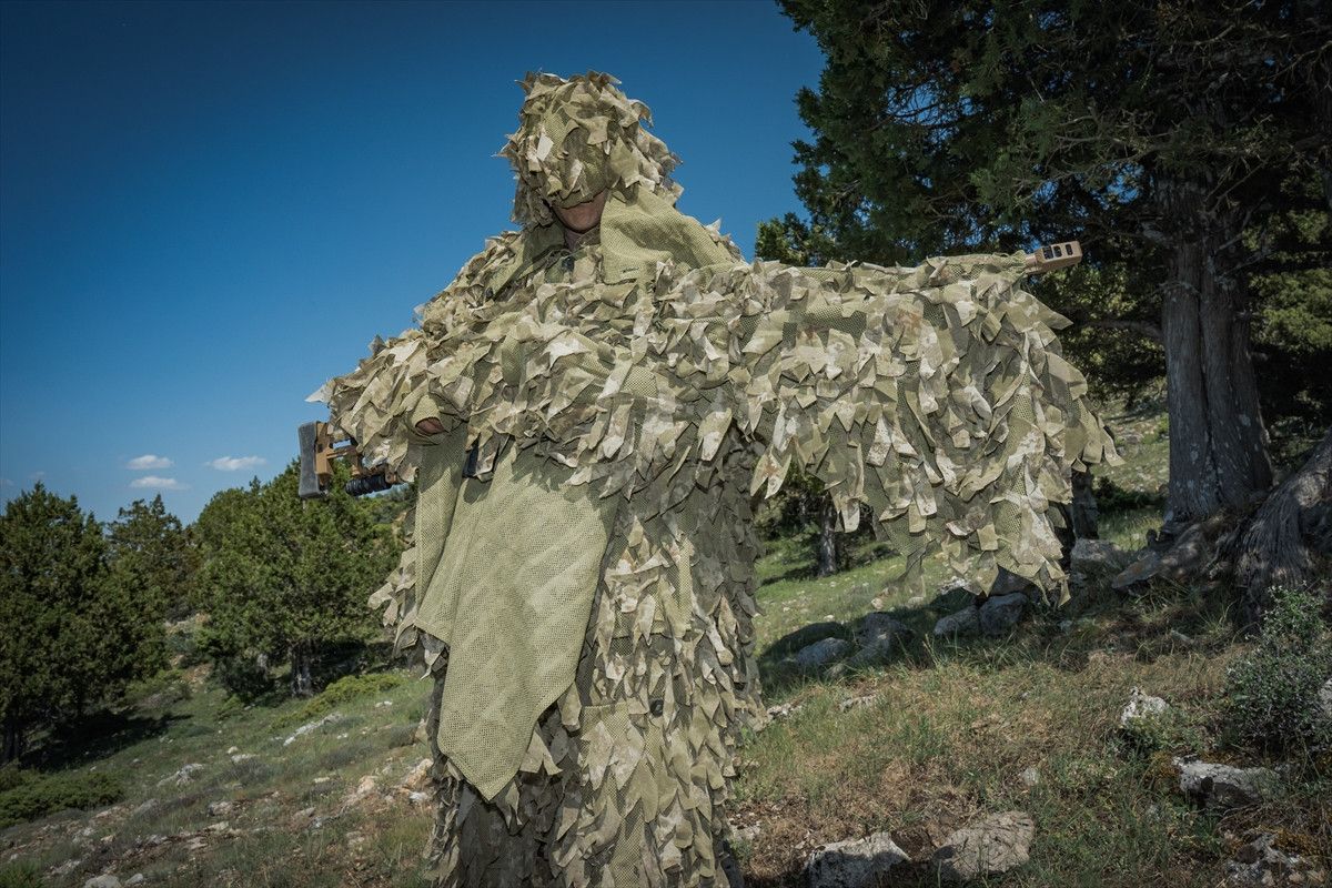 Timler giydikleri “ghillie suit” kıyafetleriyle, ilerleme ve siper alış biçimleriyle her türlü yerde adeta görünmez oluyor.