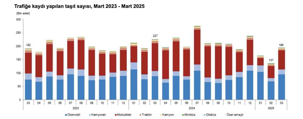 Türkiye İstatistik Kurumu (TÜİK), mart ayına ilişkin motorlu kara taşıtları istatistiklerini açıkladı.