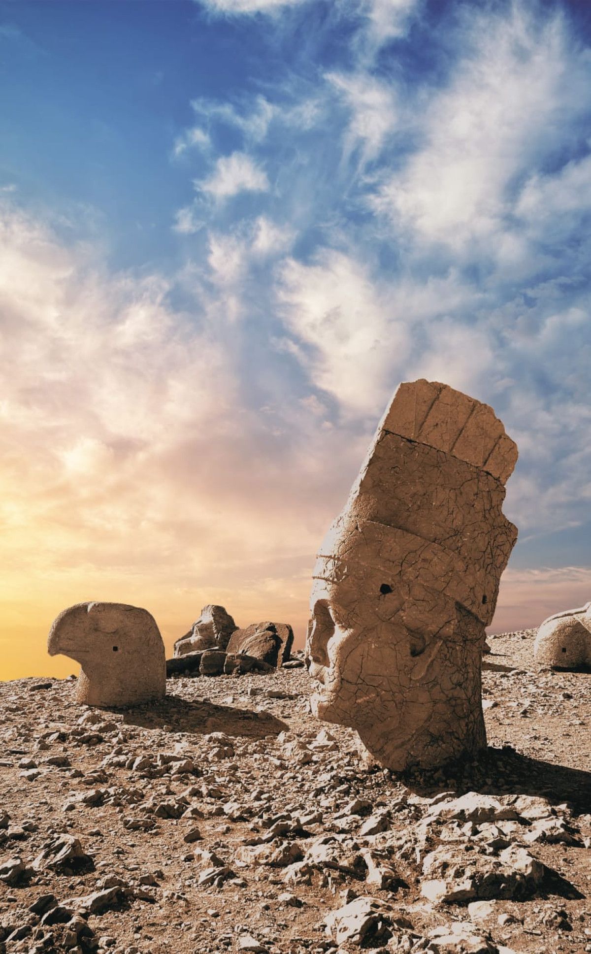 Görkemli heykelleriyle Nemrut, sırf kültürel bir paha değil; tıpkı vakitte Türkiye’nin etrafa hassas idare anlayışının da görsel simgesi olarak tam sayfa yer buluyor.