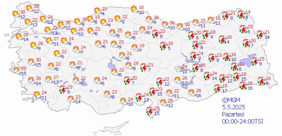 Pazartesi günü Doğu Akdeniz, İç Anadolu’nun doğusu, Doğu Karadeniz’in iç kesitleri, Doğu Anadolu’nun kuzey ve doğusu ile Güneydoğu Anadolu’nun doğusunda yağışların tesirli olmasının öngörüldüğünü anlatan Tekin, “Antalya’nın batısının iç kesitleri, Burdur etrafları de yağışlı olacak. Başka yerlerdeyse modüllü ve az bulutlu hava hakim olacak” dedi.