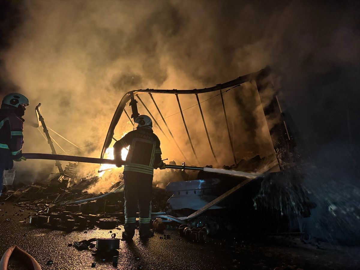 Yangında tırın dorsesi büsbütün yanarak kullanılamaz hale geldi.