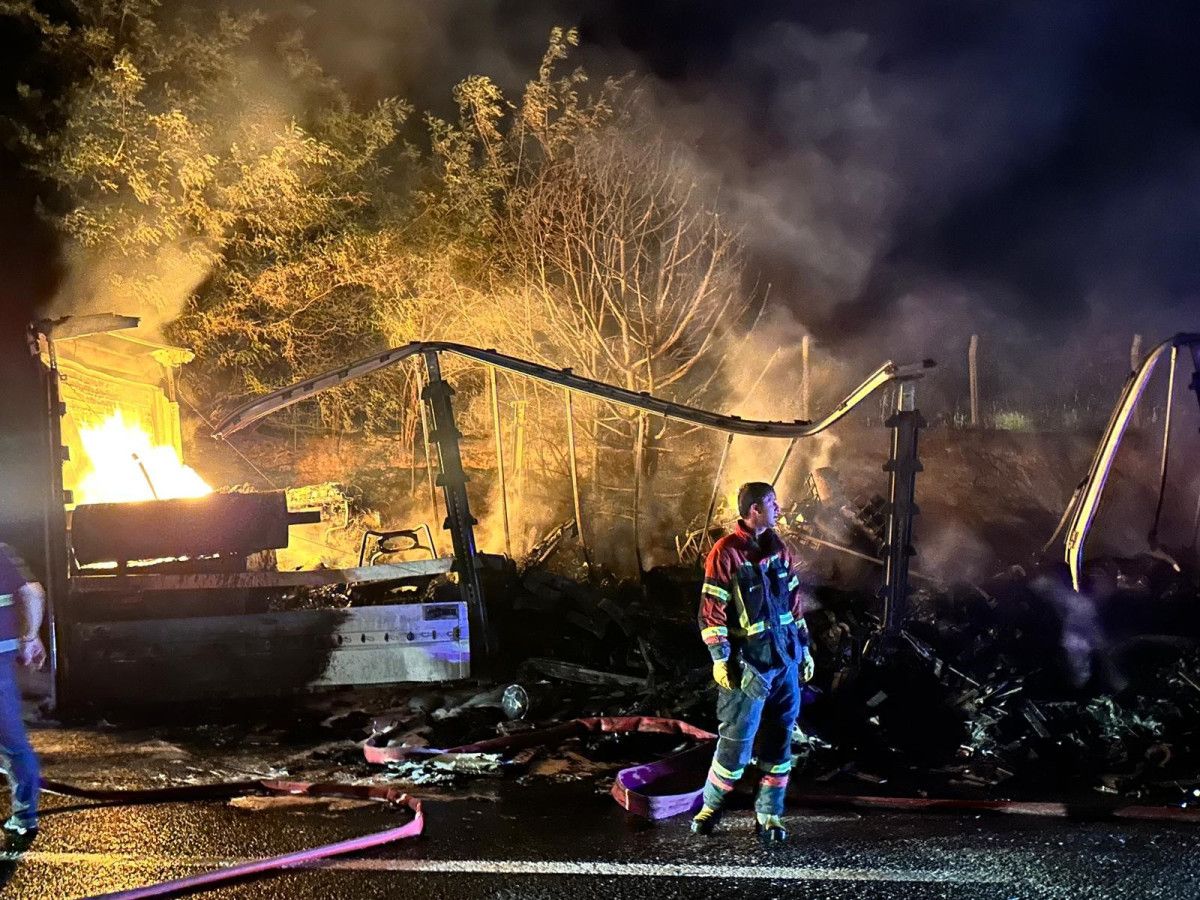 Ekiplerin müdahalesi sonucu yangın söndürülürken, dorse kullanılmaz hale geldi.