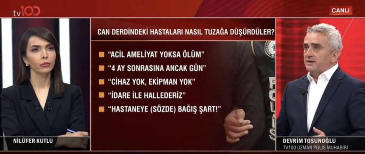 Hastanenin döner sermayesine paralel bir yapı oluşturduklarını söyleyen Tosunoğlu, sisteme girilmeden vurgun yapıldığını lisana getirdi. Hastalardan 100 bin ile 300 bin lira ortasında para talep edildiği öğrenildi.