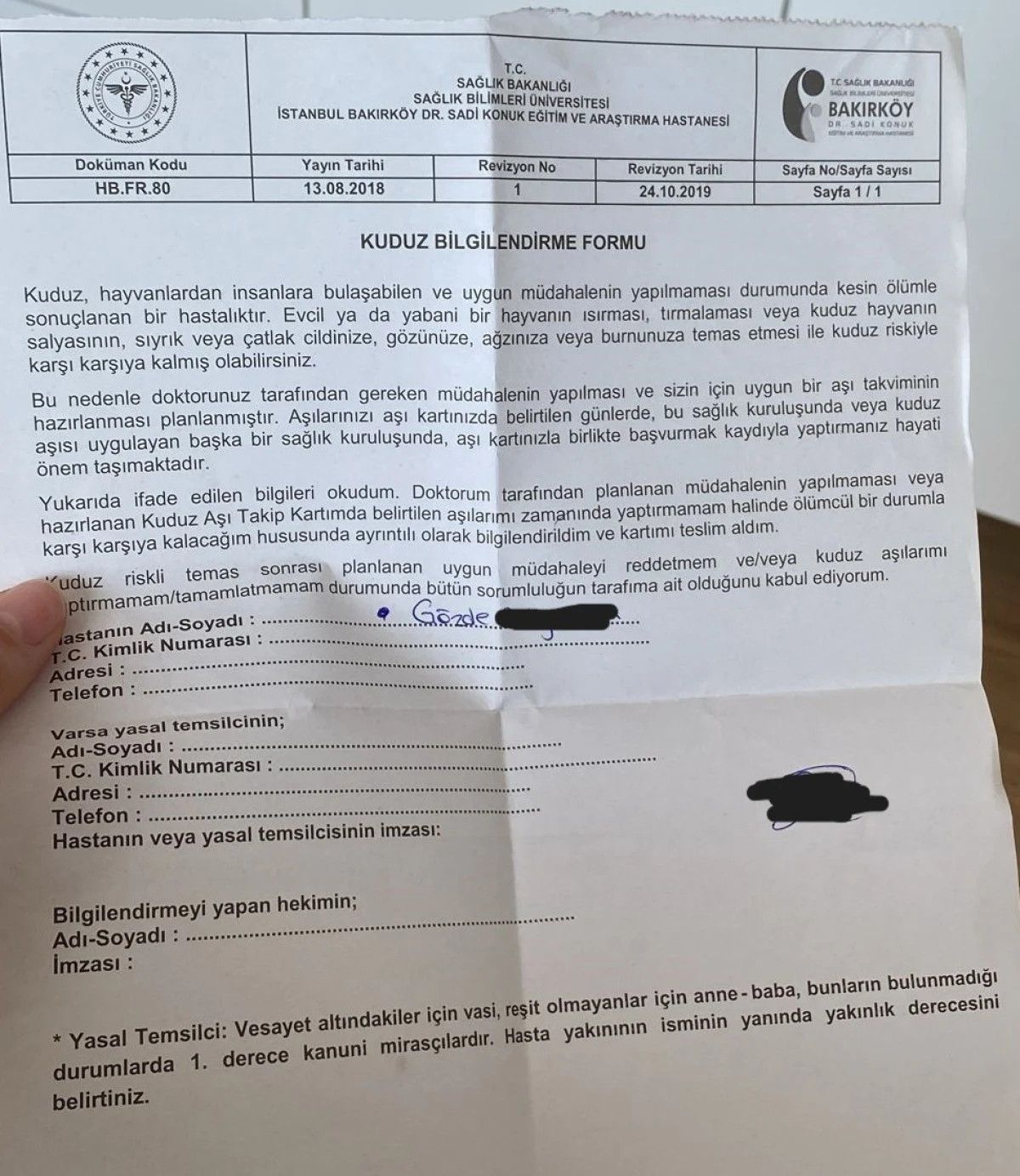 Bacağındaki ısırıkların derin olduğu tespit edilen genç kıza, Acil Serviste tetanoz aşısı yapılarak müdahale edildi.