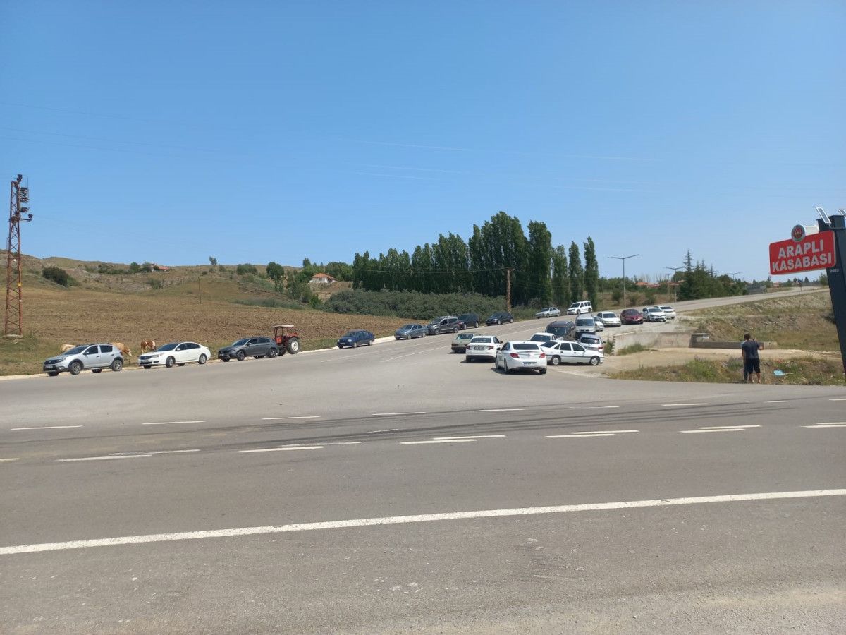 Araplı Kasabası girişinde toplanan vatandaşlar, yaşadıkları mağduriyeti lisana getirdi.