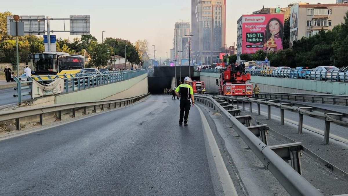 Polis, alt geçidi trafiğe kapatırken, itfaiye takımları yangına müdahalesini sürdürüyor.
