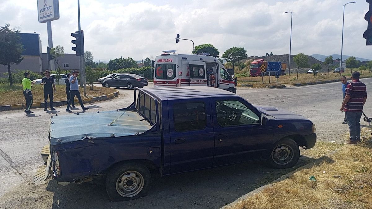 Kazada pikap şoförü Hasan A. ile ambulansta bulunan hasta refakatçisi olduğu öğrenilen bir bayan, hafif halde yaralandı.