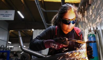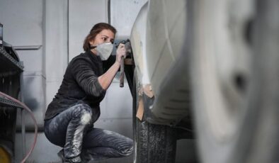 Depremzede genç kadın eşinin dükkanında kaportacı oldu