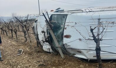Afyonkarahisar’da takla atan minibüs şarampole devrildi