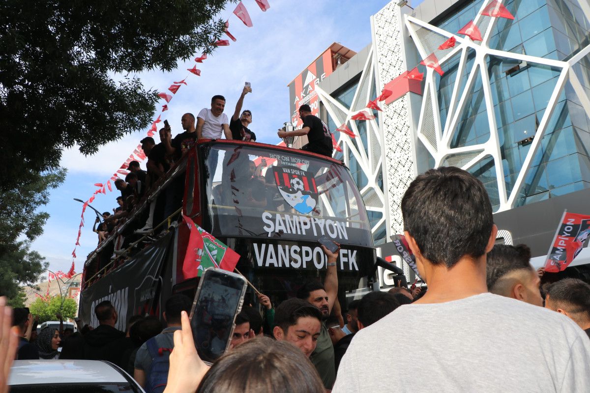 Van Valisi Ozan Balcı, YYÜ Rektörü Prof. Dr. Hamdullah Şevli, Van Emniyet Müdürü Murat Mutlu, Büyükşehir Belediyesi’nin yerine kayyum atanan eş liderleri Abdullah Zeydan ile Neslihan Şedal, Van Spor FK Kulüp Başkanı Erol Temel, kulüp yöneticileri, futbolcular ve binlerce taraftarın katıldığı kutlama programı epeyce coşkulu geçti.